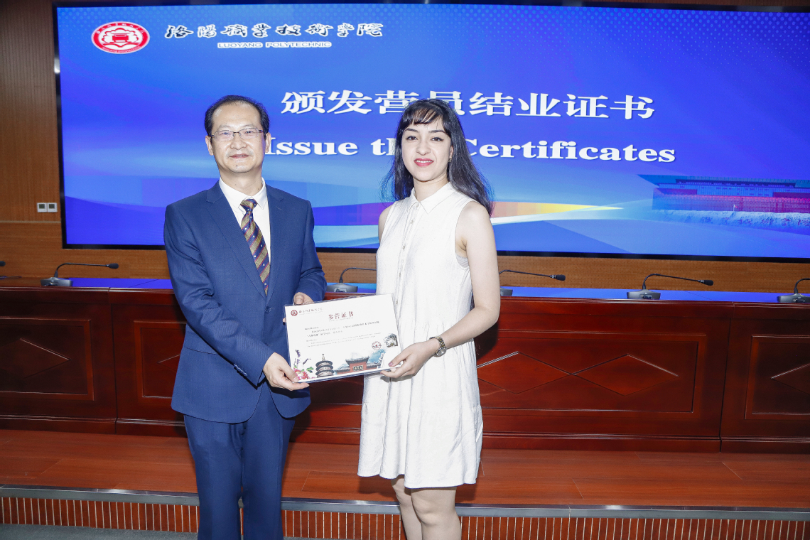 8月19日,2024洛阳职业技术学院突尼斯“古都奇遇”研学项目在我校闭营。亚非国际发展联盟中国区负责人张红宇、洛阳职业技术学院校长李保安出席闭营仪式。
