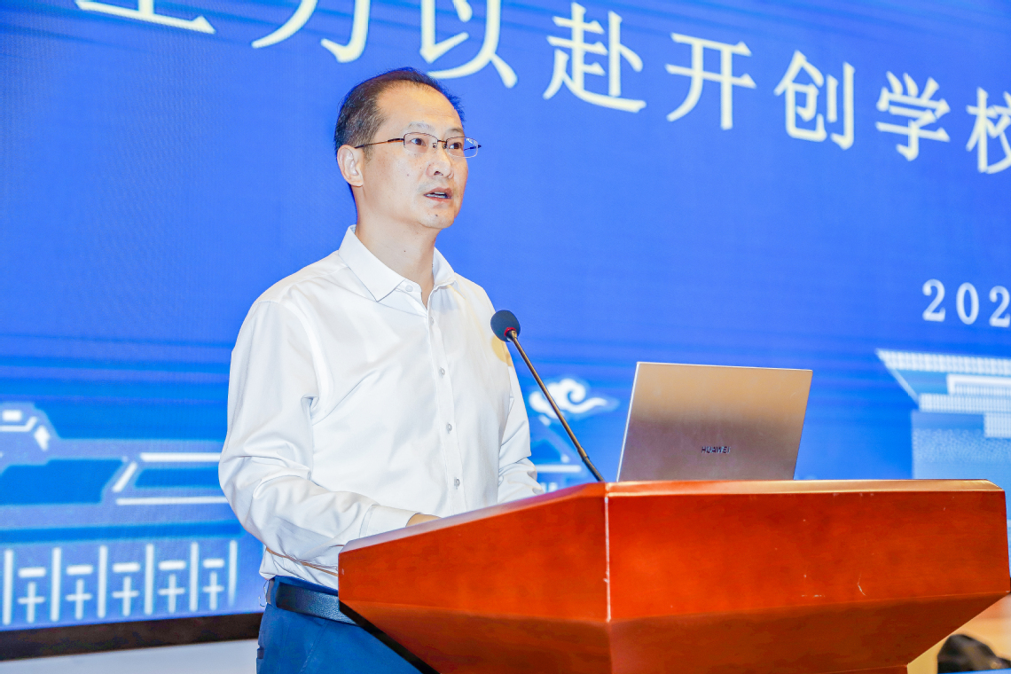 李保安总结回顾了上半年工作,全面分析了学校发展面临的新形势,并从加强党建引领、加速“双高”建设、深化教育教学改革、加强有组织科研、推动校企合作产教融合项目落地见效、服务教师全面发展、加快推进数字校园建设进程、高标准推进国际化办学、争分夺秒推进新校区二期建设等方面安排部署了秋季学期重点工作。