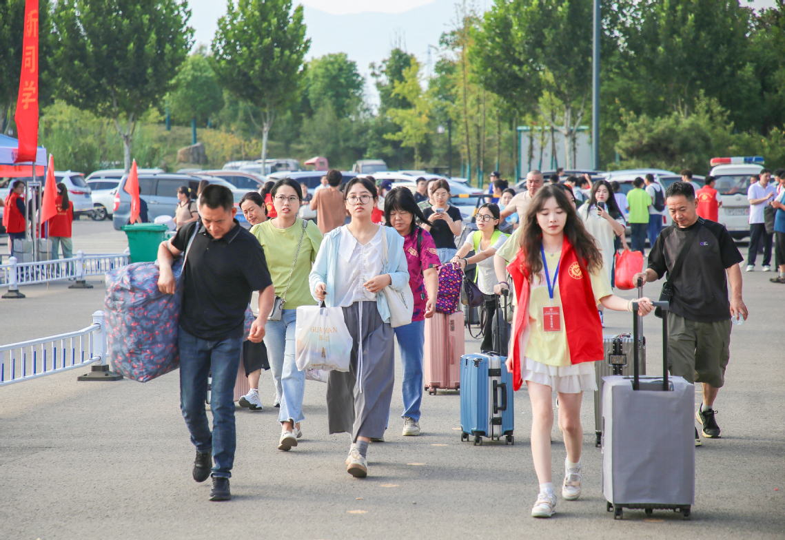 为了方便外地新生入校报到,学校分别在洛阳火车站、高铁龙门站设置了迎新接站点,安排师生志愿者在出站口迎接新生,并由车辆统一接送至各校区;各校区门口,辖区交警、学校保安互相配合,疏导交通、维持秩序;各学院志愿者及时做好引导,帮助新生及家长搬运行李;报到点位上,每一名迎新工作人员各司其职,各项报到流程有条不紊。