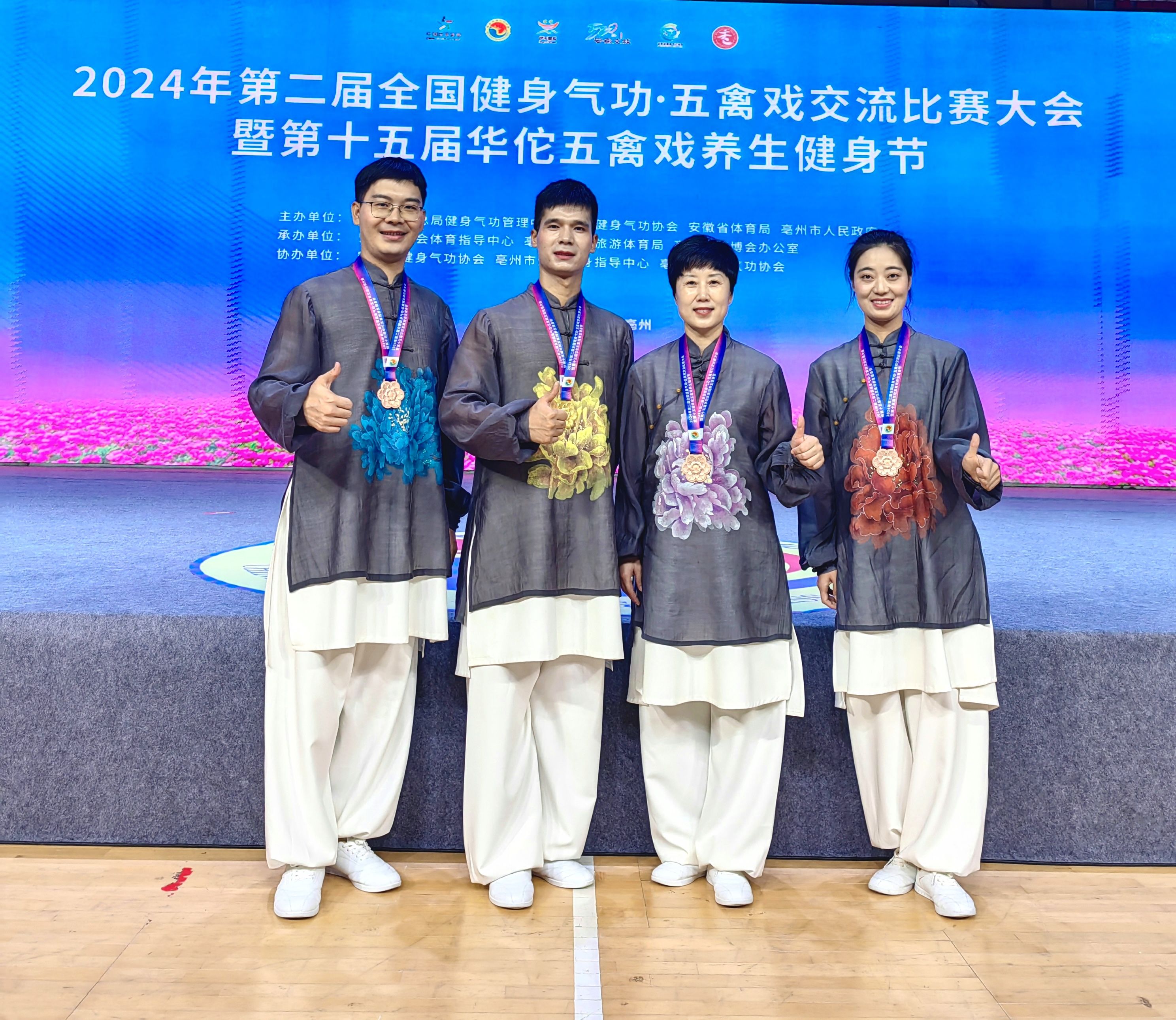 9月10日至13日,2024年第二届全国健身气功·五禽戏交流比赛在安徽亳州举行,我校取得个人赛一等奖1项,三等奖3项,并收获集体赛三等奖。