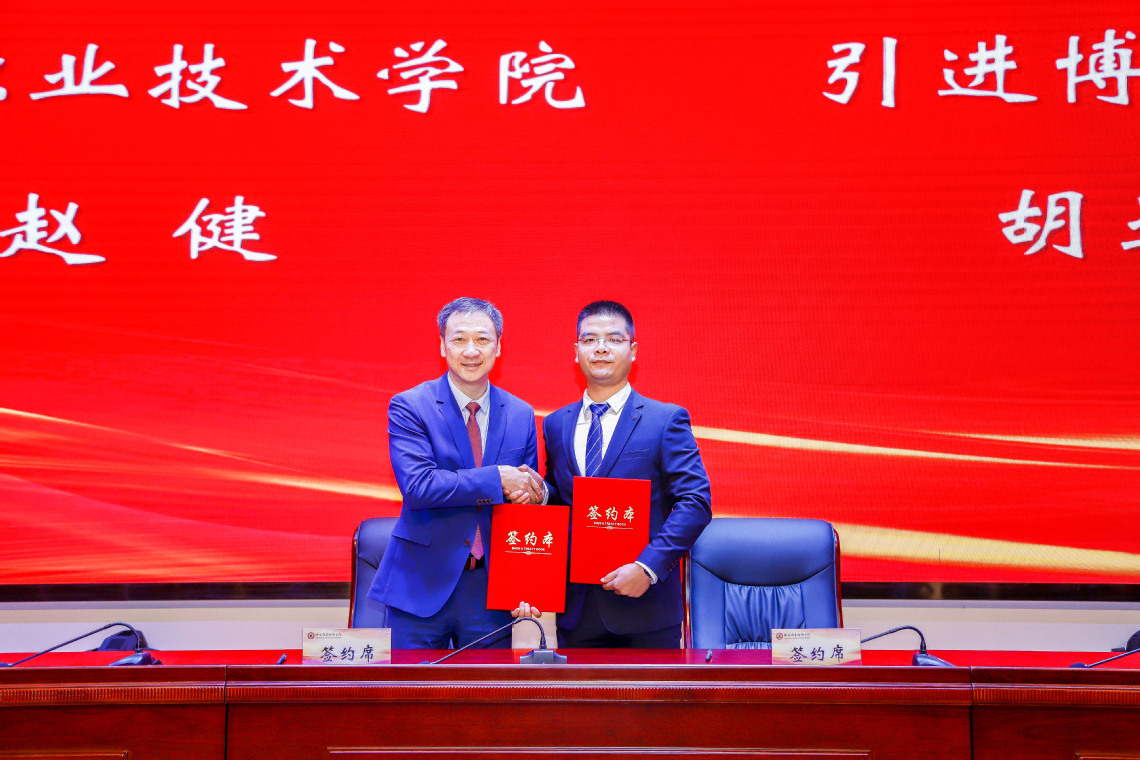 在人才与横向课题签约仪式上,赵健分别与胡亚辉、李玉萍、祝京媛等新引进博士代表和柔性引进人才代表签约。上海金东唐科技有限公司、东融控股集团有限公司、北京履坦科技有限公司等企业分别与学校签订食用菌智能化辐射灭菌系统、亚微米级氢氧化铝制备新技术、基于人工智能的农业机器人作业监测系统开发与试验等11项横向课题项目。