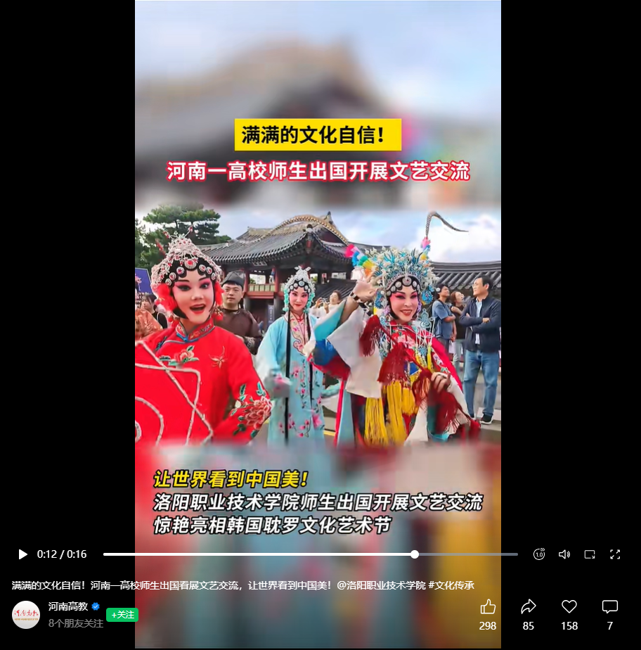 河南高教视频号:满满的文化自信!河南一高校师生出国看展文艺交流,让世界看到中国美!