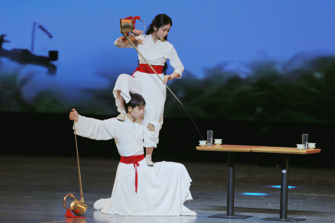 在展演过程中,高速铁路客运服务、酒店管理与数字化运营、旅游管理、烹饪工艺与营养、文化创意与策划、传播与策划专业的学生和老师在舞台上集中展示了高铁礼仪操、长嘴壶茶艺、传统插花、调酒与新式茶饮、导游讲解、台式茶艺、剪纸文创技艺、等专业特色技能。