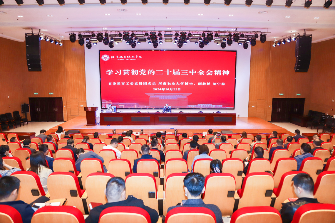 10月22日,省委教育工委宣讲团成员、河南农业大学马克思主义学院副教授刘宁静走进我校,专题宣讲党的二十届三中全会精神。党委副书记任晓平主持报告会。