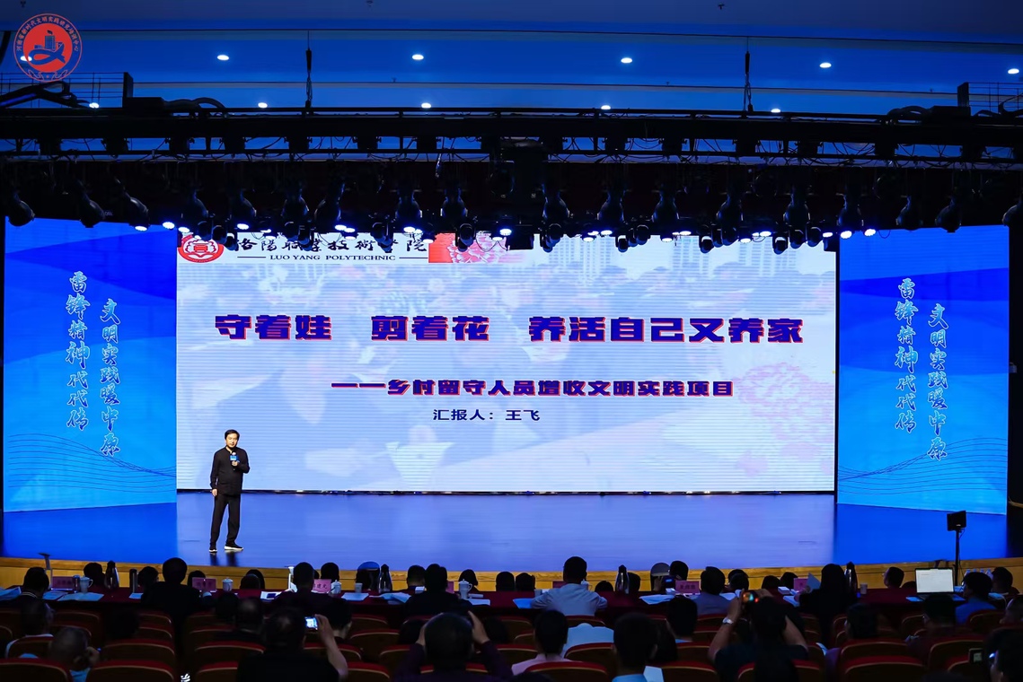 “守着娃、剪着花、养活自己又养家”——乡村留守人员增收文明实践项目”由洛阳职业技术学院副教授、河洛大工匠、中原大工匠、河南省级非物质文化遗产(剪纸技艺)代表性传承人王飞,依托洛阳职业技术学院剪纸艺术研究社发起,定期组织师生志愿者深入乡村、社区为当地的妇女、老人以及残障人士进行公益剪纸技艺培训,并通过“倾囊相授”“订单生产”“体验工坊”“定制服务”等创新模式,更好地培训剪纸人才队伍,形成剪纸产业,传承弘扬中华优秀传统文化,坚定文化自信,建设宜居宜业和美乡村。7年来,文明实践项目覆盖洛阳市7县7区和新乡市5镇3乡,已有8000余人从中受益,每人每年增收8400元,不仅让群众实现了“守着娃,剪着花,养活自己又养家”,还和谐了邻里关系,弘扬了新风正气,培育了文明乡风、良好家风和淳朴民风。