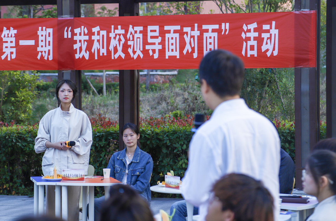 10月24日下午,伊滨校区劳动广场上,由党政办公室统筹,学生中心承办的第一期“我和校领导面对面”活动正在进行。校长李保安带领党政办公室、党委宣传统战部、课程中心、学生中心、后勤保卫处、校团委负责人和20余名学生代表面对面沟通交流,零距离倾听学生心声,深入了解学生思想动态和学习生活状况。