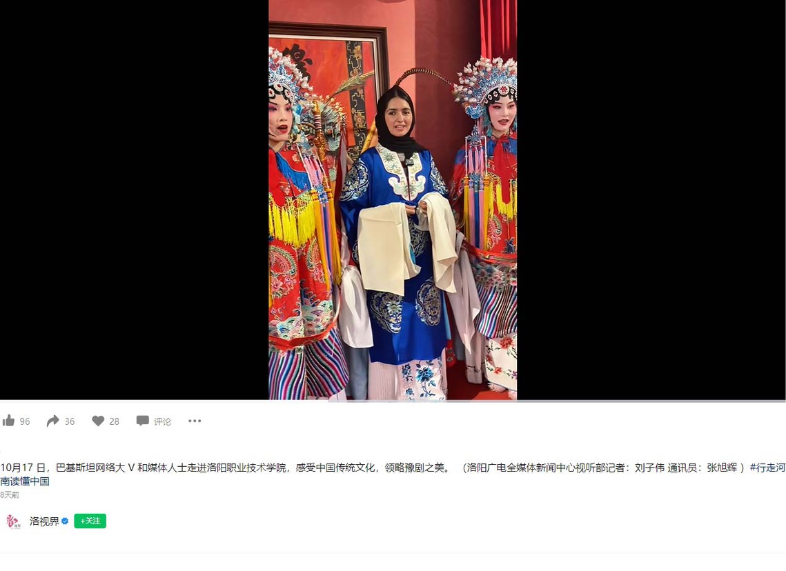 洛阳广播电视台:巴基斯坦网络大 V 和媒体人士走进洛阳职业技术学院,感受中国传统文化,领略豫剧之美。