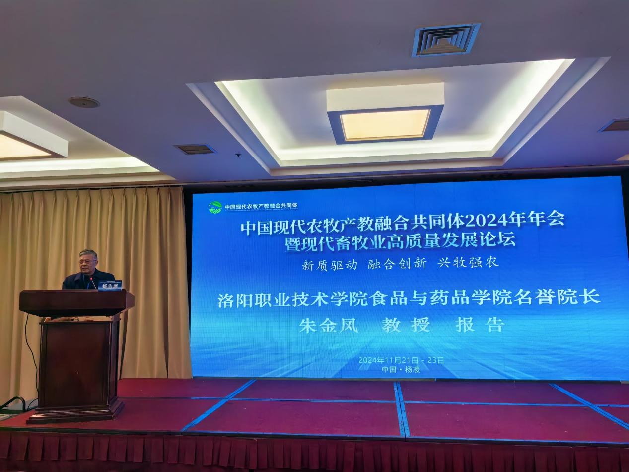 11月23日,我校食品与药品学院名誉院长朱金凤教授作为特邀嘉宾在中国现代农牧产教融合共同体2024年年会暨现代畜牧业高质量发展论坛上作专题报告。