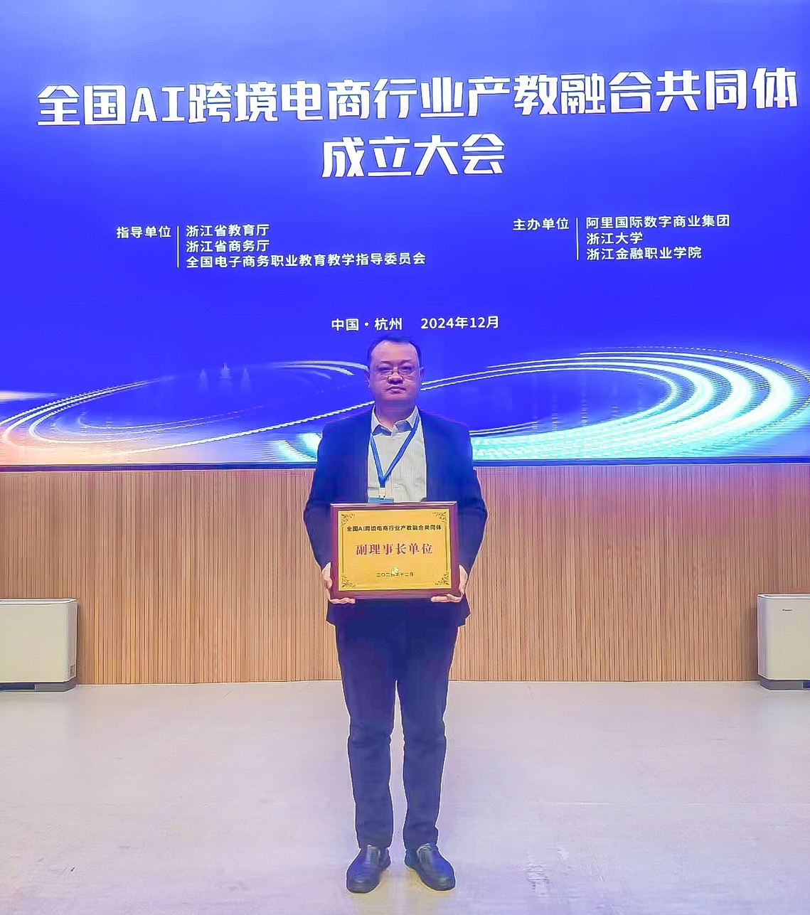 12月3日至5日,全国AI跨境电商行业产教融合共同体成立大会在杭州举行,我校当选副理事长单位。