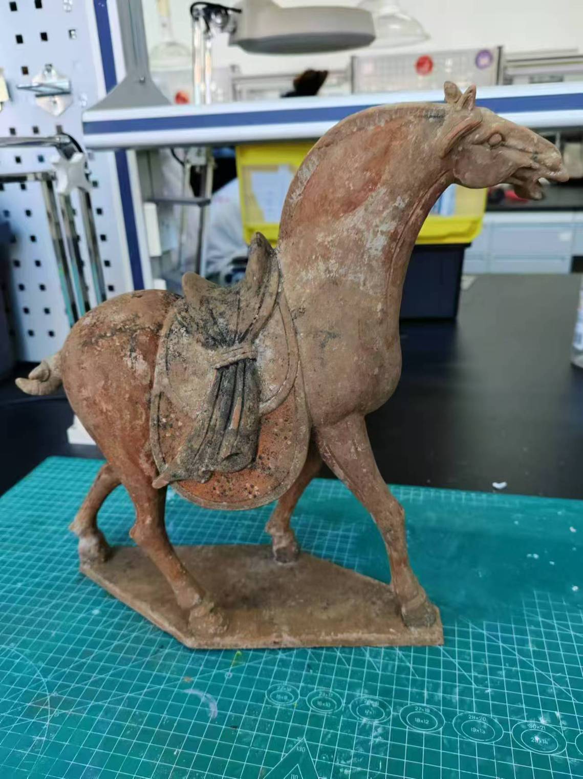 袁亚婷是洛阳职业技术学院2023届文物保护与修复专业毕业生,被评为河洛工匠、洛阳市工艺美术大师,先后荣获全国文物行业职业技能大赛河南省选拔赛第二名,全国文物行业职业技能大赛陶瓷修复组三等奖。2024年9月,作为柔性引进人才到洛阳职业技术学院文物保护考古学院任教,主要承担陶瓷器文物修复技术课程教学。在授课之余,袁亚婷积极参与各类文物修复,她历时半年对这件红陶彩绘马腿部和底部断裂破损部分进行修复,并在此次比赛中收获银奖。