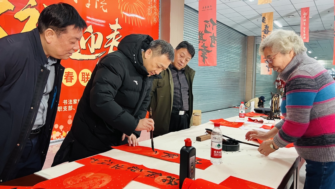 活动现场热闹非凡、一派喜庆祥和,广大师生积极参与,书法家挥毫泼墨,根据师生的具体需求内容,现场书写春联。一幅幅红彤彤的春联、一张张喜庆的“福”字,表达了学校对广大师生的新年祝福和对即将到来的农历春节的美好祝愿。