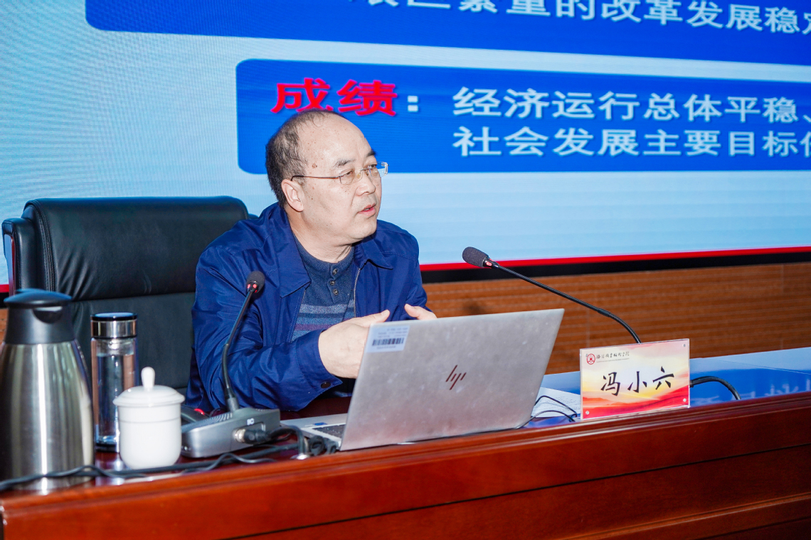 3月20日,洛阳职业技术学院举行2025年第一次党委理论学习中心组集体学习(扩大)会,专题学习全国两会精神。市委党校原副校长冯小六副教授应邀作专题授课,党委书记赵健出席会议,副校长韦元民主持会议。