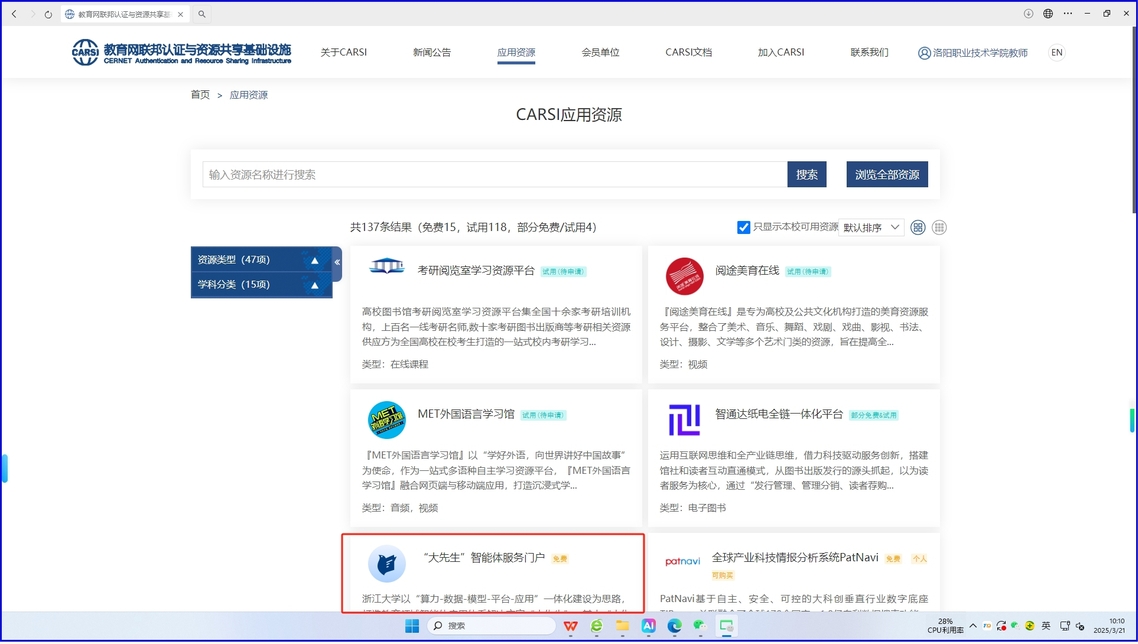 4.选择“大先生”智能服务门户,也可访问其他免费或试用资源。