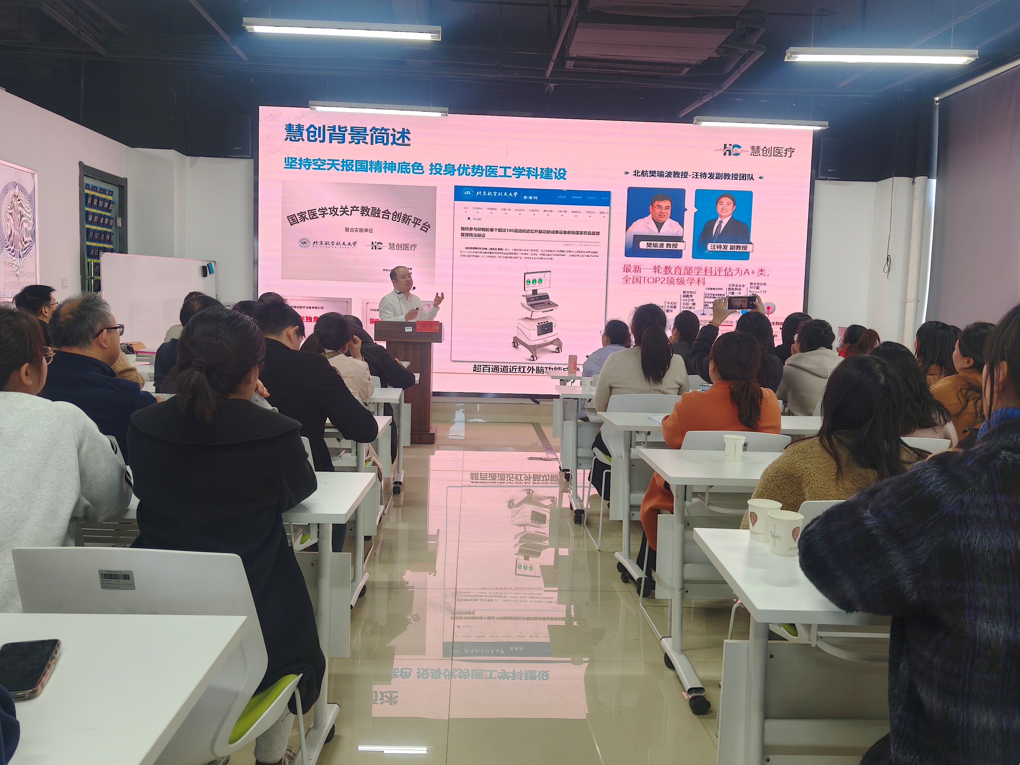 讲座中,梁航深入介绍了近红外脑功能成像技术的原理、发展历程、应用场景。他指出,该技术在精神疾病、儿童发育障碍疾病诊断中应用广泛,有助于理解大脑在运动、情绪感知等活动中的机制。梁航还分享了慧创医疗在近红外脑功能成像技术研发上的成果,并就技术应用局限、未来发展方向等与师生们积极互动、深入交流。