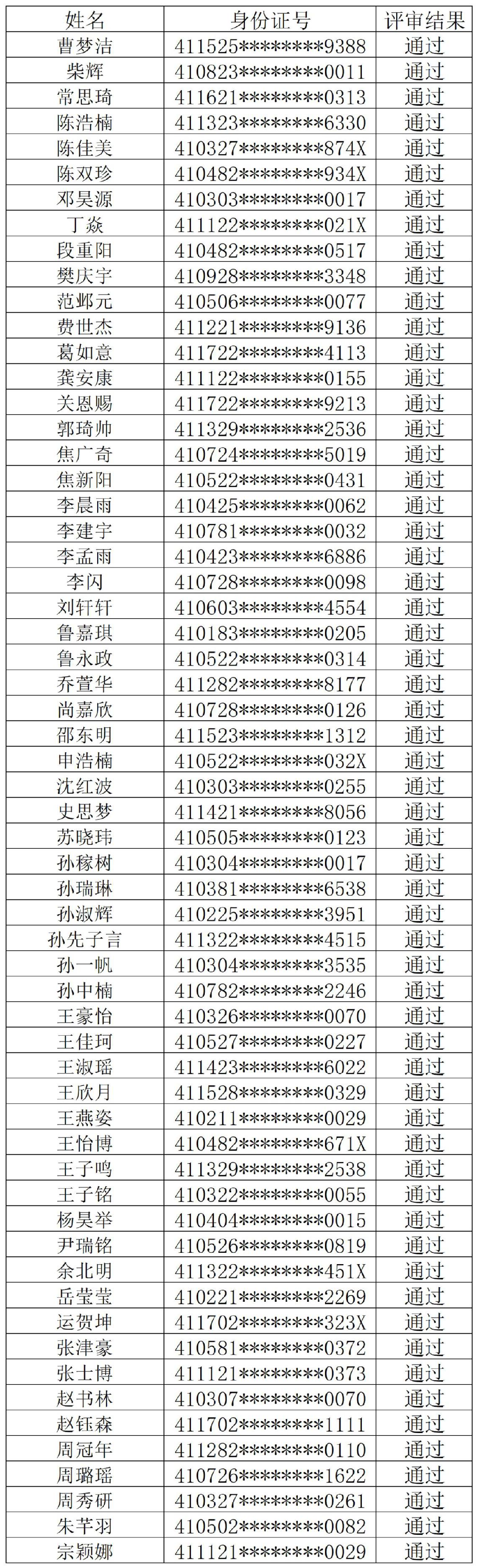 现将评审通过名单公示如下,公示期2025年4月18日-4月20日,监督电话0379-63189387。