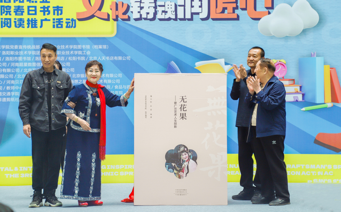 著名豫剧表演艺术家曾广兰传记《无花果——曾广兰艺术人生掠影》在现场发布,该书由我校组织编写,著名作家盛长柱和洛阳市文化馆馆长张雷执笔,生动记录了曾广兰老师对戏曲艺术的执着追求与卓越贡献。现场同步举办《曾广兰艺术人生掠影》主题图片展,以影像方式展现艺术家的精彩人生。活动现场,年近九旬的曾广兰与我校戏曲艺术学院师生同台献艺,演绎了豫剧经典选段,精湛的表演赢得现场阵阵喝彩。