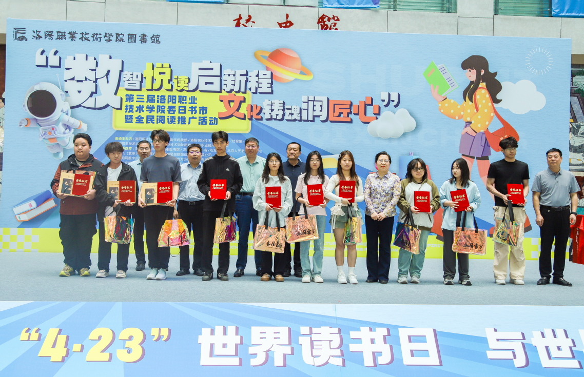 开市仪式上,校领导为2024年度“师生阅读之星”颁发荣誉证书,并为“洛阳职业技术学院青年读书社”揭牌,原校领导孙建勋向图书馆捐赠珍贵图书。