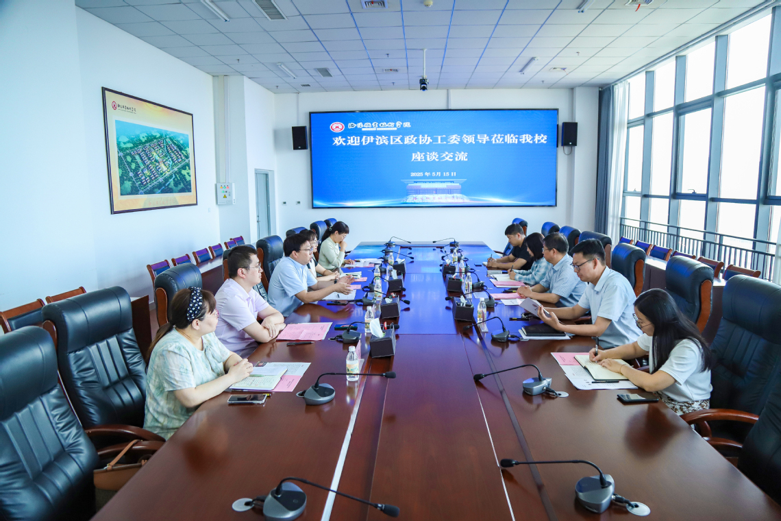 5月15日下午,伊滨区政协工委副主任、教体局局长陈建银一行到我校调研交流,副校长张卫国出席会议。