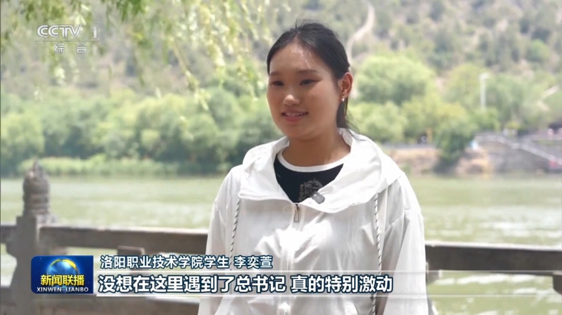 作为文物保护考古学院的学生,李奕萱曾多次跟随学校老师到龙门石窟实地学习,没想到5月19日这天竟然能见到习近平总书记。