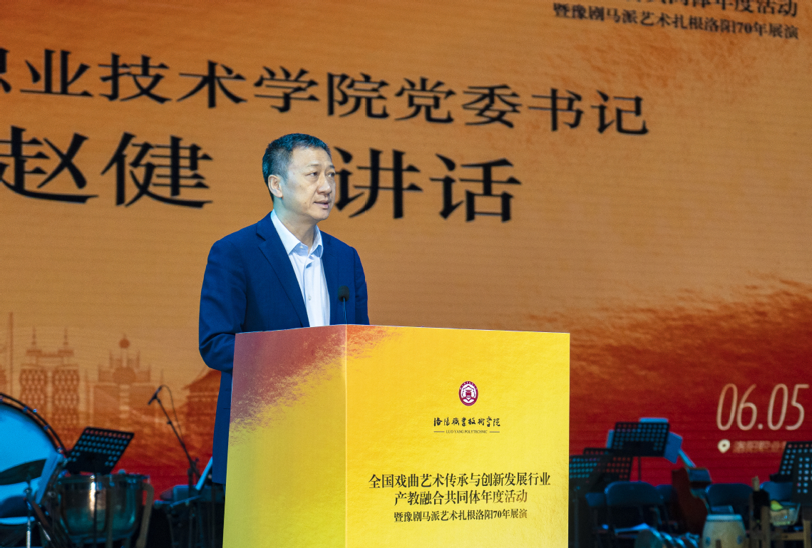 赵健在致辞中表示,全国戏曲艺术传承与创新发展行业产教融合共同体自去年成立以来,各成员单位秉持高度的责任感和使命感,积极作为、通力协作,通过召开全国戏曲艺术传承创新研讨会、优化课程体系与教学模式、促进人才双向流动、举办戏曲艺术文创设计展等,在人才培养、校企合作、社会服务、文化传承创新等多个领域取得了显著的成绩,有力推动了传统戏曲艺术与现代数字技术的有机融合,实现了戏曲教育供给与行业人才需求的精准对接,为新时代戏曲艺术的创新性发展注入了动能、增添了活力。希望各成员单位充分发挥自身优势与特色,集众智、聚合力,持续为戏曲艺术传承与创新谋思路、解难题,为探索戏曲艺术育人新路径、扩大戏曲艺术影响力、培养更多高素质技术技能人才作出新的更大贡献。