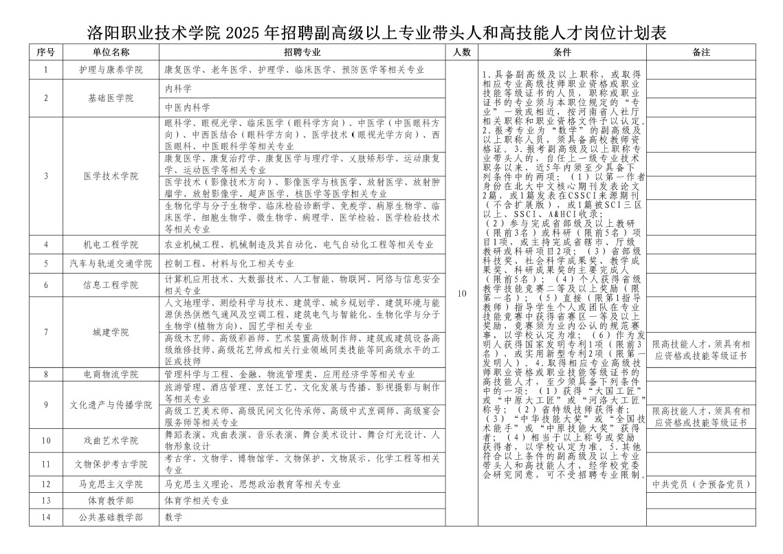 “全国技术能手”“中华技能大奖”“中原技能大奖”获得者,国家级职业技能大赛一等奖获得者的指导教师,省级技能大师工作室负责人,获评“中原大工匠”或“河洛大工匠”称号的高技能人才,其他经学校研究同意的我校特殊急需紧缺的高技能人才。