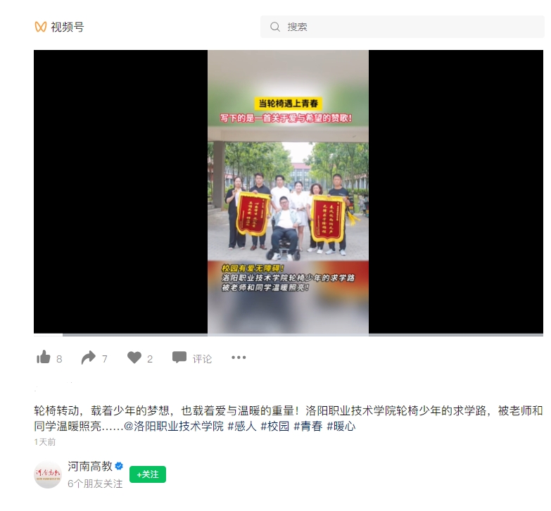 河南高教:轮椅转动,载着少年的梦想,也载着爱与温暖的重量!洛阳职业技术学院轮椅少年的求学路,被老师和同学温暖照亮……