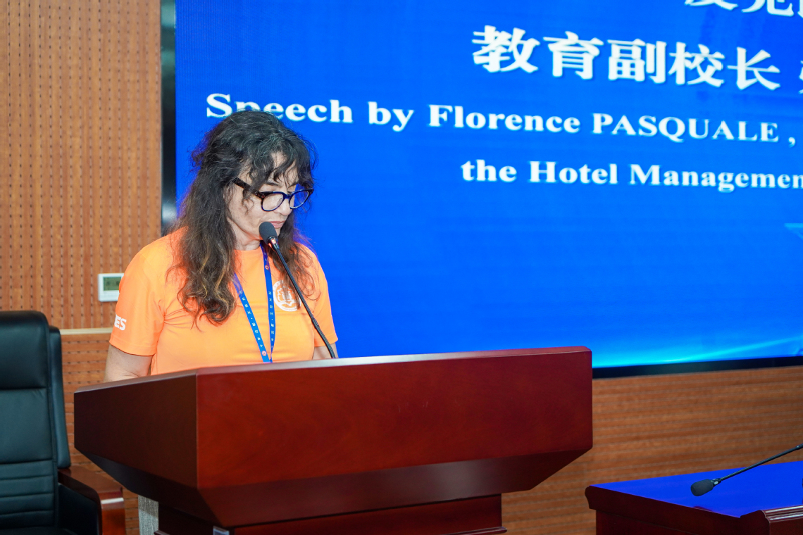 法国尼斯学区教育局大区教育总督学凯瑟琳·罗索、安娜·索菲·皮克区域中学酒店管理学院职业技术教育副校长弗洛朗丝·帕斯卡尔、洛阳职业技术学院校长李保安出席开营仪式。