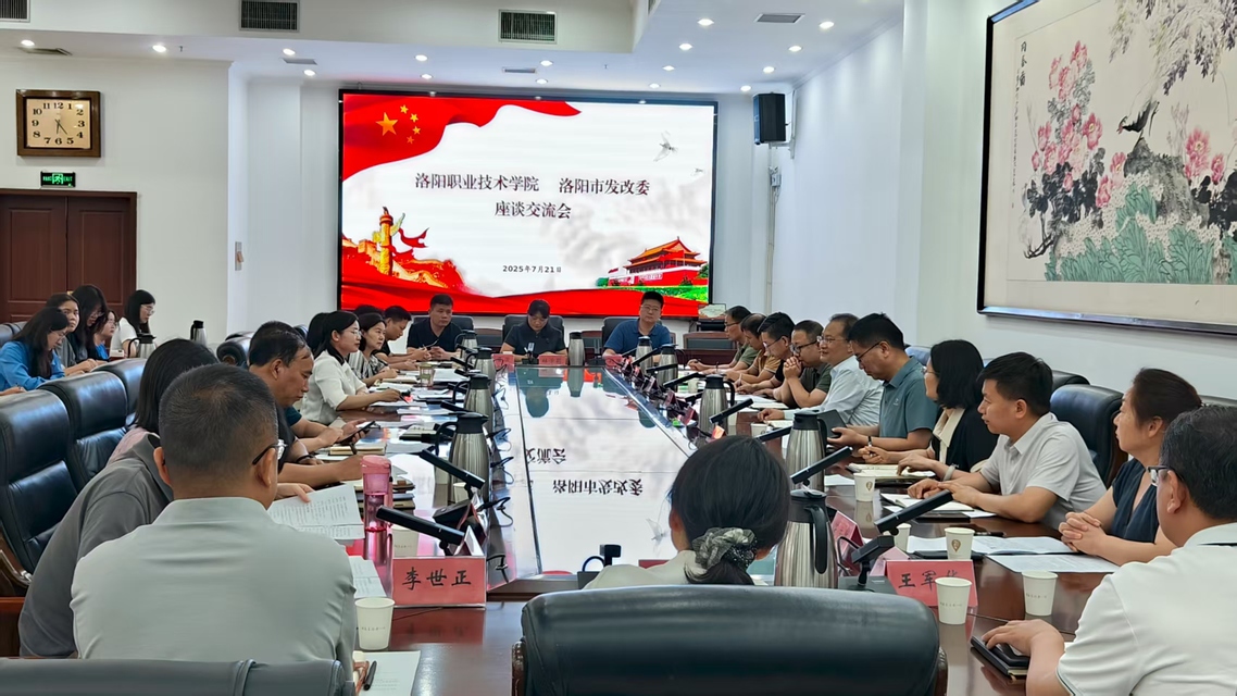 7月21日,我校与洛阳市发展和改革委员会举行高质量发展座谈交流会,围绕洛阳市产业规划重点方向、专业建设对接产业发展、人才培养服务地方需求等进行深入交流。