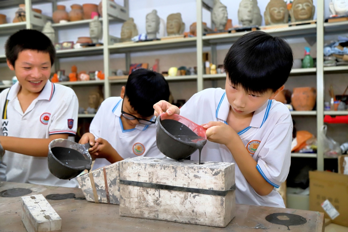 在非遗传承课堂上,同学们学习了传承千年的非遗绒花技艺制作,并亲自上手制作了二里头绿松石头牌徽章,通过非遗技艺与现代创意的碰撞,让绒花工艺在指尖上绽放,进一步彰显文化传承的活力。