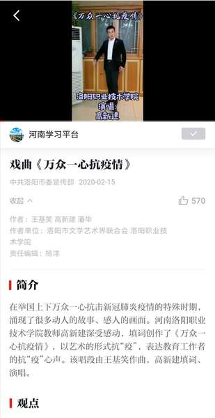 我院教师原创抗“疫”戏曲登上“学习强国”