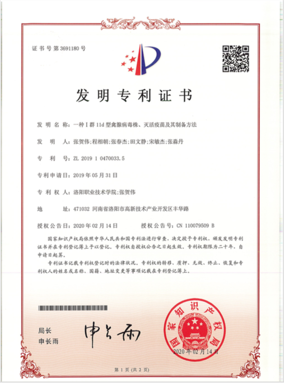 近日,我院食品与药品学院张贺伟博士接到中华人民共和国国家知识产权局授权的“一种I群11d