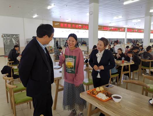 11月5日中午,随着熙熙攘攘的学生队伍,党委书记朱美荣深入学院伊滨校区食堂调研,实地查看后勤餐饮运营
