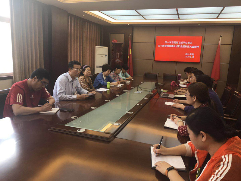 5月14日下午,会计学院在学院三楼会议室组织老师学习全国教育大会精神。王长旭院长指出,我们要把学习领