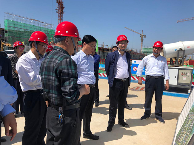 2019年5月8日下午,党委书记朱美荣、纪检书记王晓哲等一行到我院新校区建设现场调研。新校区建设副指