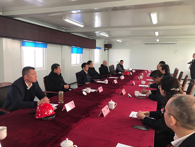 2019年3月4日上午,中建五局党委书记、董事长田卫国到新校区建设现场指导工作,与学院党委书记朱美荣