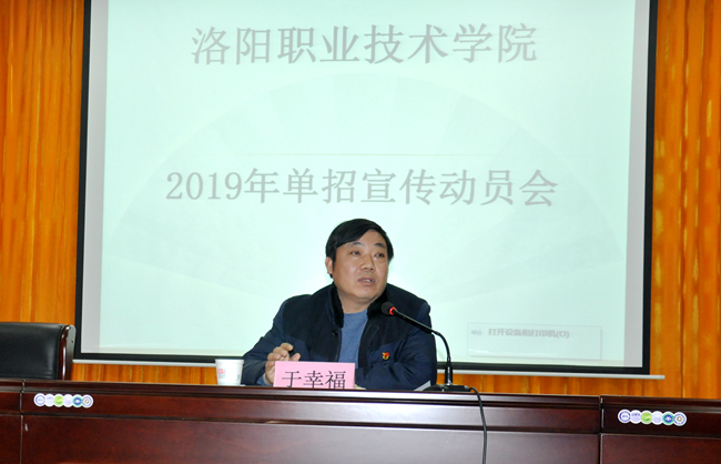 2月26日下午,我院2019年单招宣传动员会在机场校区学术报告厅召开,于幸福副院长出席会议并作讲话,