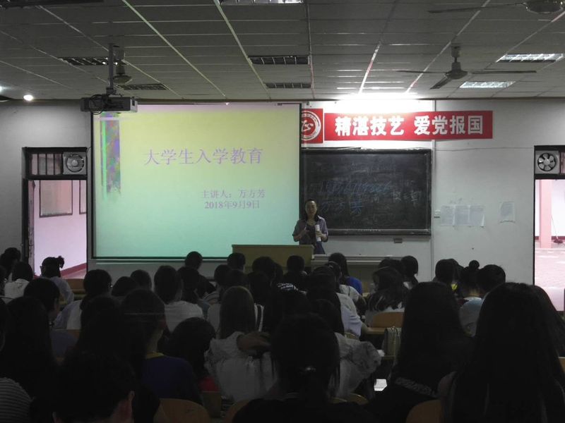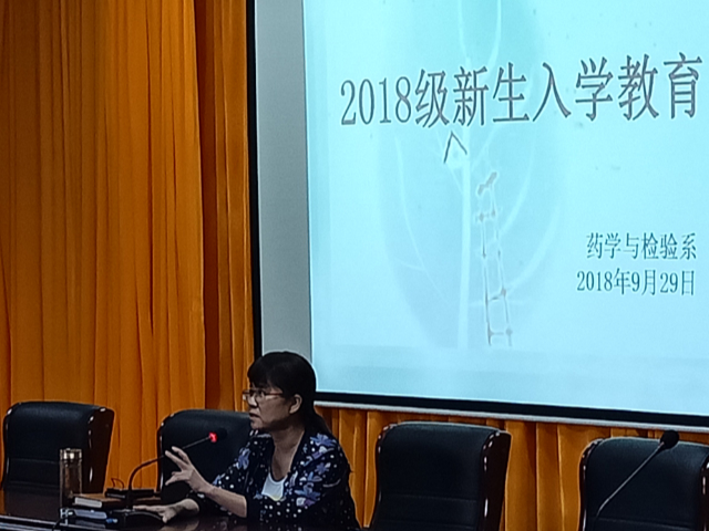 9月29日上午,药学与检验系2018级新生入学教育在机场校区南院学术报告厅举行。系书记朱莉以“立大志