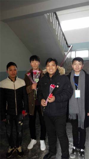 11月24日噪声,有一群行色匆匆的学生走在这零下6度的校园里。他们手中的点点红色,在白雪
