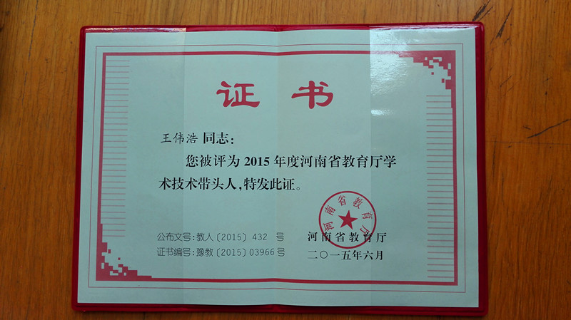 日前,河南省教育厅下发《关于公布2015年河南省教育厅学术技术带头人评选结果的通知》,我院王伟浩副教