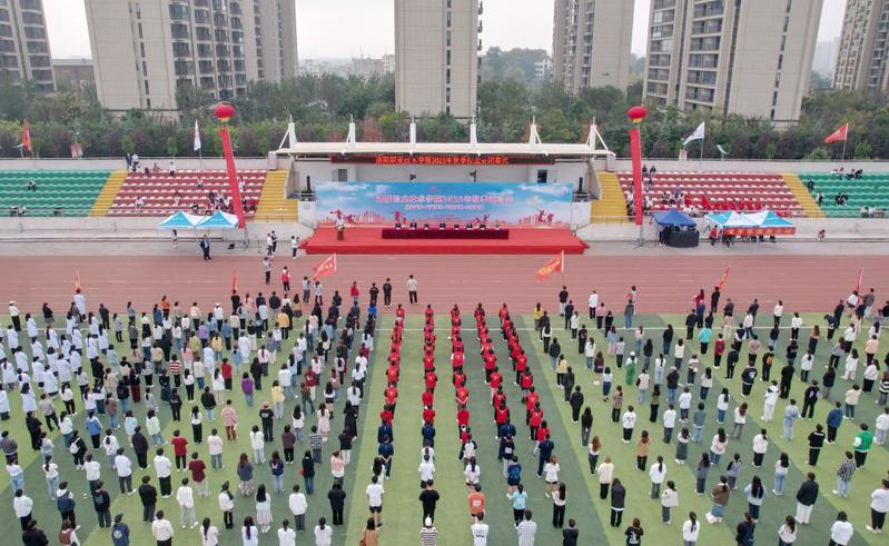 10月26日上午,我校2023年秋季运动会在伊滨校区田径场开幕。副校长韦元民、余江宁、李保安、张志友