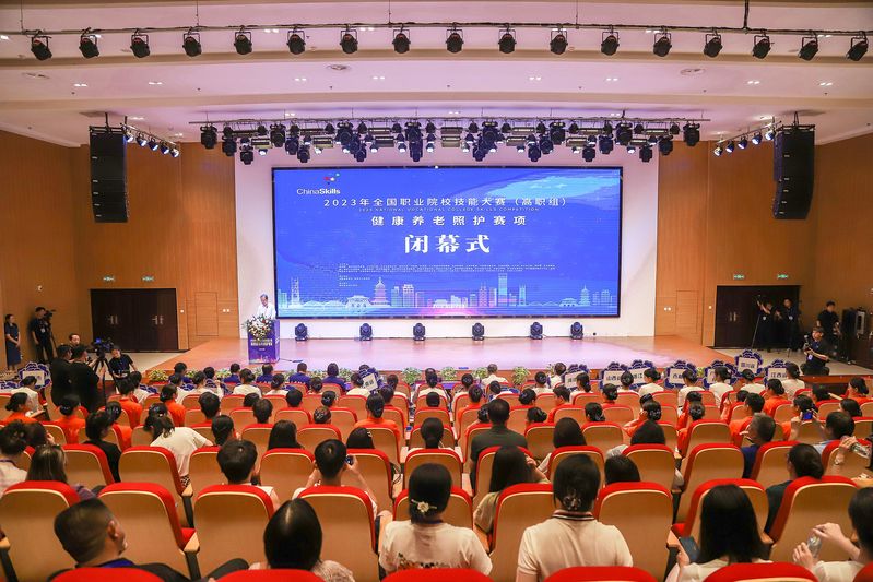 7月22日,2023年全国职业院校技能大赛健康养老照护赛项在我校闭幕。 教育部职业教育与成人教