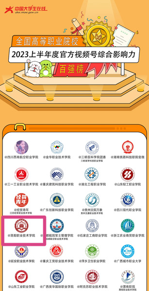 近日,中国大学生在线微信公众号公布了2023年上半年全国高校官方视频号综合影响力榜单,我校视频号入选