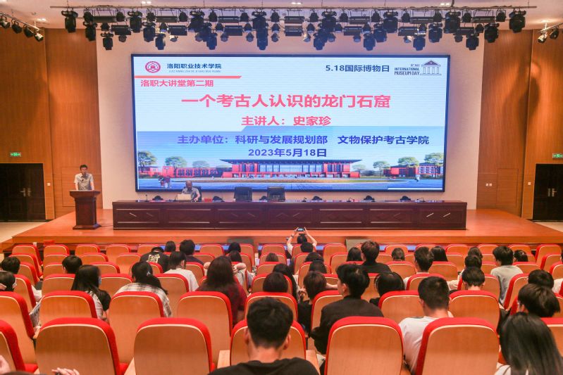 5月18日下午,“洛职大讲堂”2023年第二期讲座在大学生活动中心一楼报告厅开讲。龙门石窟研究院院长
