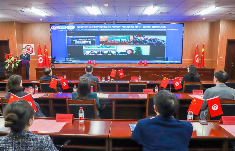2月13日下午,洛阳职业技术学院突尼斯中医康复治疗培训基地揭牌仪式在图文信息中心930会议室举行,我