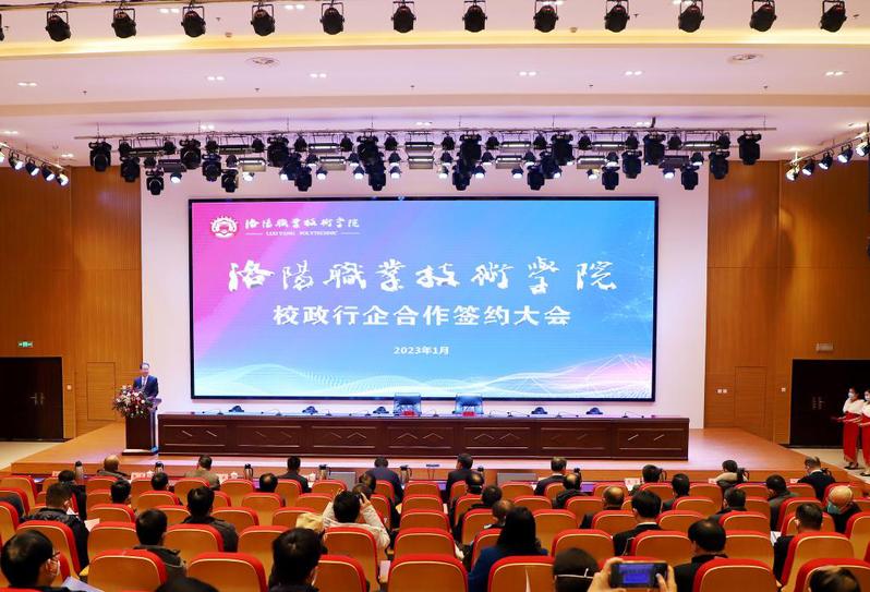1月10日,我校校政行企合作签约大会在大学生活动中心举行,我校分别与洛阳市机关事务管理局、老城区人民