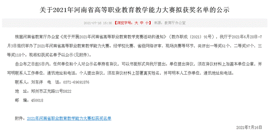 近日,省教育厅公布2021年河南省高等职业教育教学能力大赛获奖名单,我校教师分别在公共基础课程组、专