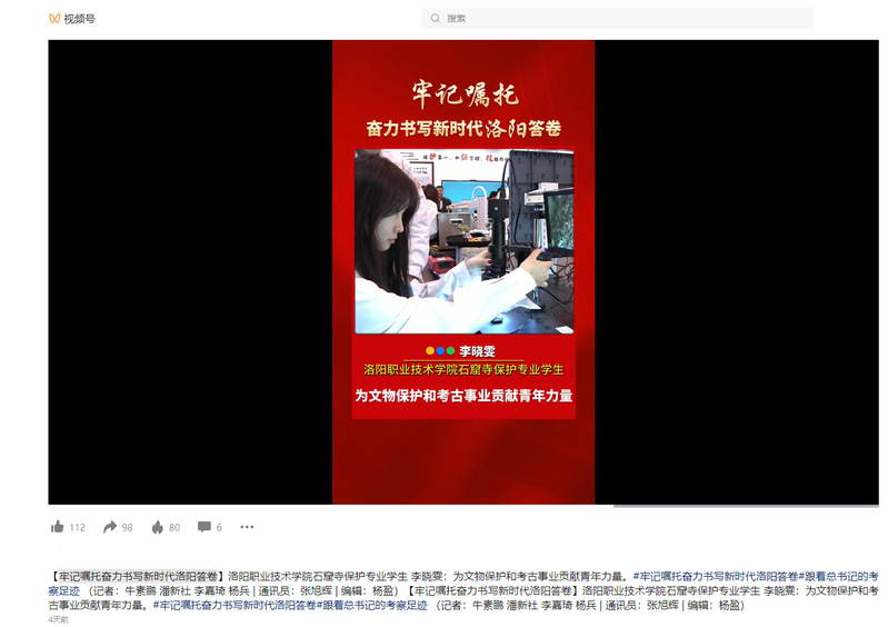 洛阳融媒:【牢记嘱托奋力书写新时代洛阳答卷】洛阳职业技术学院石窟寺保护专业学生 梁傅景