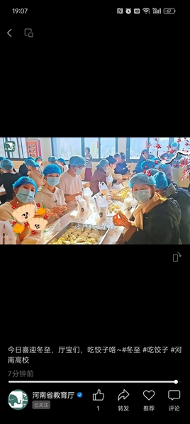 河南省教育厅视频号:今日喜迎冬至,厅宝们,吃饺子咯~