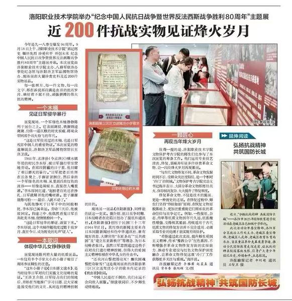 洛阳晚报:洛阳职业技术学院举办“纪念中国人民抗日战争暨世界反法西斯战争胜利80周年”主题展,近200件抗战实物见证烽火岁月