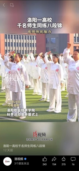 洛视频微信视频号:洛阳一高校千名师生同练八段锦